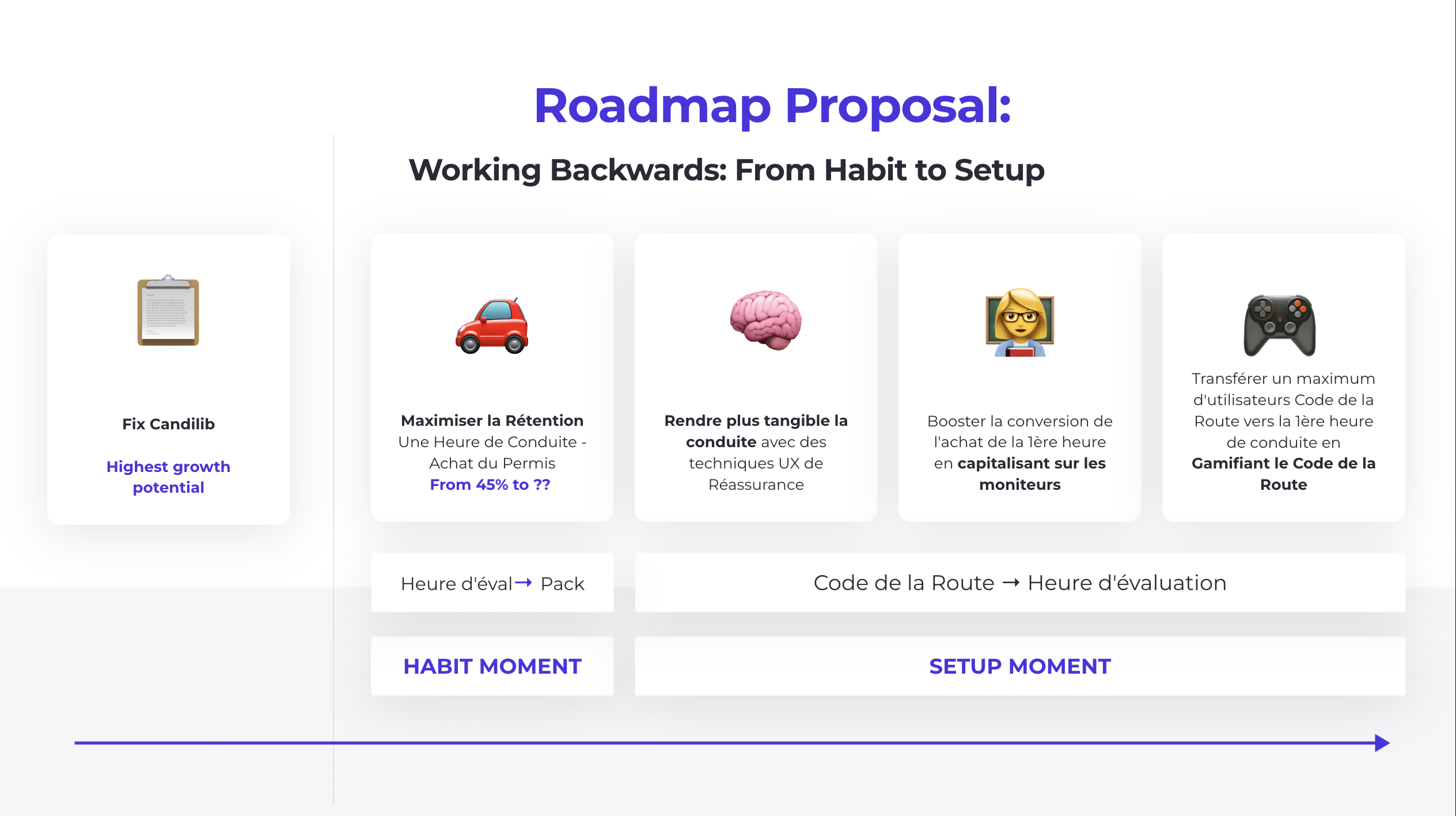 Malgré sa position de leader dans le secteur des cours de conduite en ligne et un nombre important d’utilisateurs inscrits, Ornikar a fait face à un défi majeur en 2021 : convertir les utilisateurs ayant suivi la théorie en apprenants prêts à passer à la pratique. Bien que l'adhésion aux cours en ligne soit forte, un désengagement s'est produit lors de la réservation des leçons de conduite. Le défi principal était de comprendre pourquoi les apprenants hésitaient à réserver leurs cours pratiques après avoir réussi les tests théoriques.